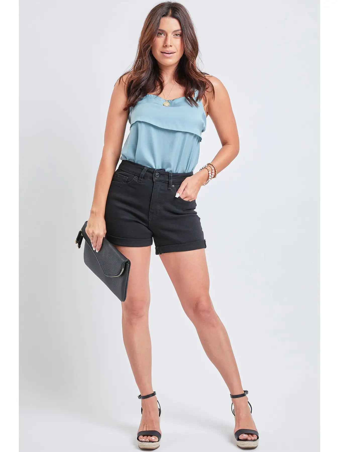 Everything you love about vintage denim, but with all the comfort! Our Women Vintage 1-Button High-Rise Fray Hem Shorts with Lycra feature light whickering, cuffed hems, and a subtle fading for that original vintage look. Made with advanced stretch so they have a lived-in feel. Designed in a high-rise that sits right below your belly button. With the way these look and feel, you’ll be reaching for these shorts all Summer long! Wear casual with a cute tee and sandals, or dress up with a blouse and wedges!